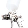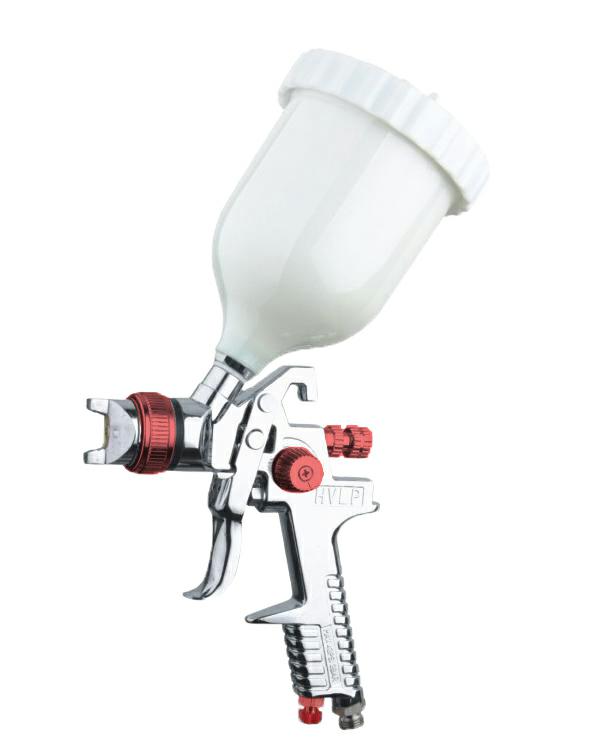 Model GT-828 HVLP to profesjonalny niskociśnieniowy pistolet lakierniczy. Zaawansowana konstrukcja pistoletu i dyszy. Pistolet wyposażony jest w górny, grawitacyjny, zbiornik z tworzywa o pojemności 600 ml. Posiada boczną regulację szerokości wachlarza oraz tylną regulację ilości farby oraz dolną regulację ilości powietrza. Na wejściu powietrza gwint 1/4″. Pistolet ma bardzo wszechstronny z powodu bogatego zestawu dysz 1.4mm , 1.7mm oraz 2.0mm. Dane techniczne: Nazwa: GT-828 Pistolet lakierniczy HVLP Kod towaru: GT-828 Typ zasilania: grawitacyjne Pojemność zbiornika: 600 ml Średnica dyszy: 1.4 (zamontowana), 1.7, 2.0mm Zużycie powietrza: 141-283 l/min Zużycie farby: 100-220 ml/min Ciśnienie maksymalne: 3 bar Wejście powietrza: 1/4″ Waga netto: 0,58 kg