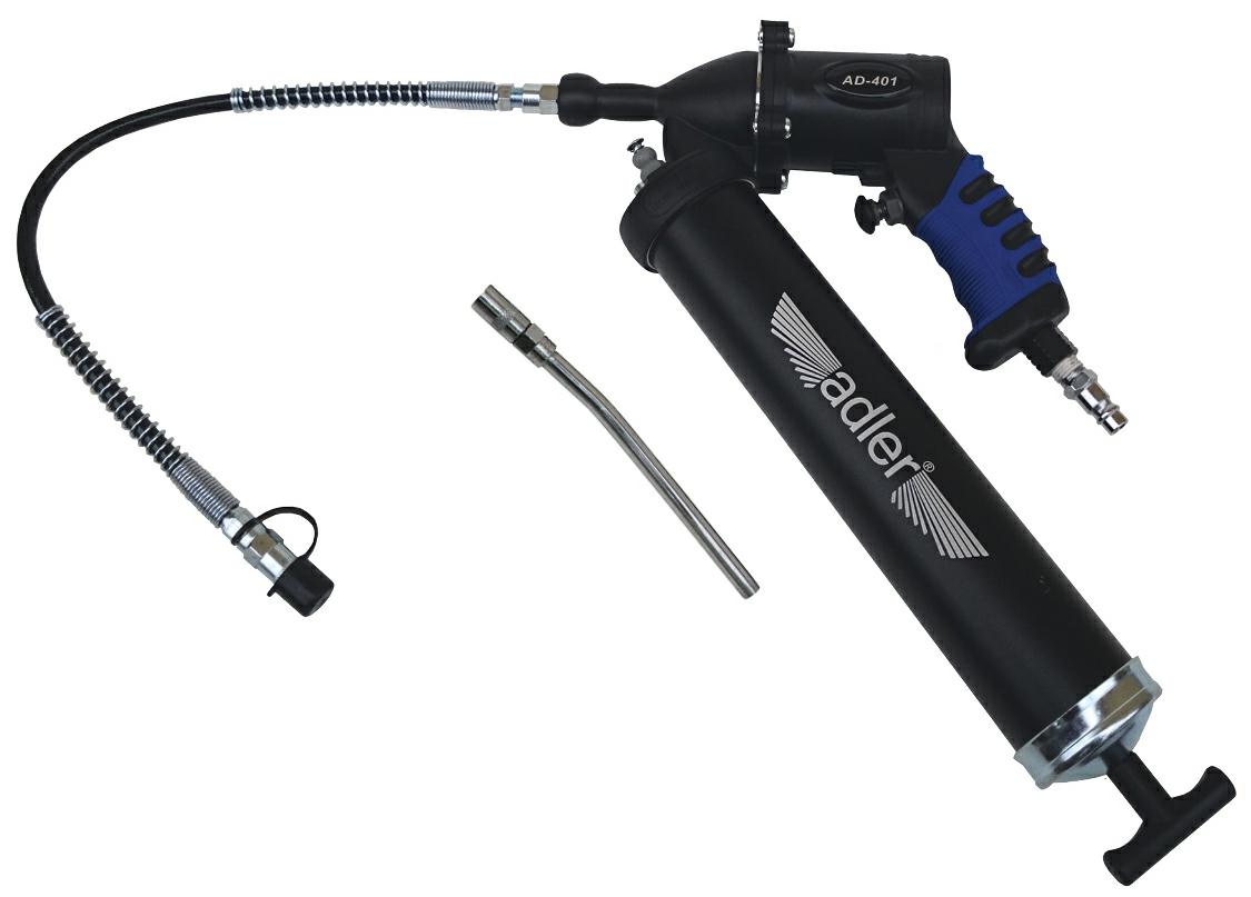 Pneumatyczne pistolety do mas gęstych służą do nakładania substancji uszczelniających i spajających – silikonów, klejów, uszczelniaczy. Są stosowane przy pracach montażowych, remontowych i naprawczych. Oddzielną grupę wśród nich stanowią smarownice ręczne i pneumatyczne, służące do nakładania lubrykatora. Nasze narzędzia charakteryzują się zaawansowaniem technologicznym, precyzją podawania masy, są ergonomiczne, starannie wykonane. Urządzenia typu 3 w 1, pozwalające na różnorodne zastosowania w tym także natryskiwanie masy, będą przydatne w każdym warsztacie i zakładzie naprawczym. Smarownica pneumatyczna AD-401 to profesjonalna wysokiej jakości smarownica, jest to najwyższy model w naszej ofercie. Zaawansowana konstrukcja i precyzja wykonania pozwalają na wykorzystanie przemysłowe. Nazwa narzędzia: AD-401 Kod towaru: MA401 Pojemność tuby: 450 ml, Ciśnienie wylotowe smaru: 110 – 276 bar Maksymalne ciśnienie pracy: 6,9 bar Waga: 1 kg
