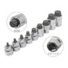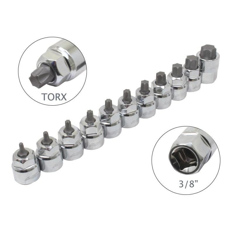 Zestaw 10 szt. nasadek typu HEX marki ASTA posiadające podwyższoną wytrzymałość oraz bardzo niski profil czym się wyróżniają na tle innych standardowych nasadek. Bardzo małe rozmiary umożliwiają ich wszechstronne zastosowanie dzięki czemu przystosowane są do różnego typu zadań, a w szczególności w ciasnych miejscach o ograniczonym dostępie. Nisko profilowa konstrukcja zapewnia bardziej bezpośrednie przenoszenie obciążeń co zwiększa ich większą trwałość. Nasadki typu HEX zostały umieszczone na metalowej szynie w celu zapewnienia odpowiedniego porządku w miejscu pracy. Zastosowanie: mechanika samochodowa, naprawa maszyn, przemysł, rolnictwo i wszędzie tam, gdzie potrzebne są nasadki typu HEX. Rozmiary: 3/8“– 3, 4, 5, 6, 7, 8, 10, 12, 14 1/2″– 17 Materiał: Cr-V Napęd: 3/8”; 1/2″ Wysokość całkowita: 3/8”: 28-32mm, 1/2”: 40mm Wysokość części roboczej: 3/8”: 7-8mm, 1/2”: 10mm