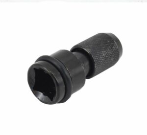 Wykonany z utwardzanej stali węglowej, powierzchnia czerniona. Radełkowana, antypoślizgowa powierzchnia pierścienia dla łatwiejszej wymiany bitów. Umożliwia zmianę mocowania z 1/2” na 1/4” HEX. Przeznaczony do pracy z kluczami i zakrętarkami udarowymi. Dane techniczne: Rozmiar: 50mm Waga: 85 g