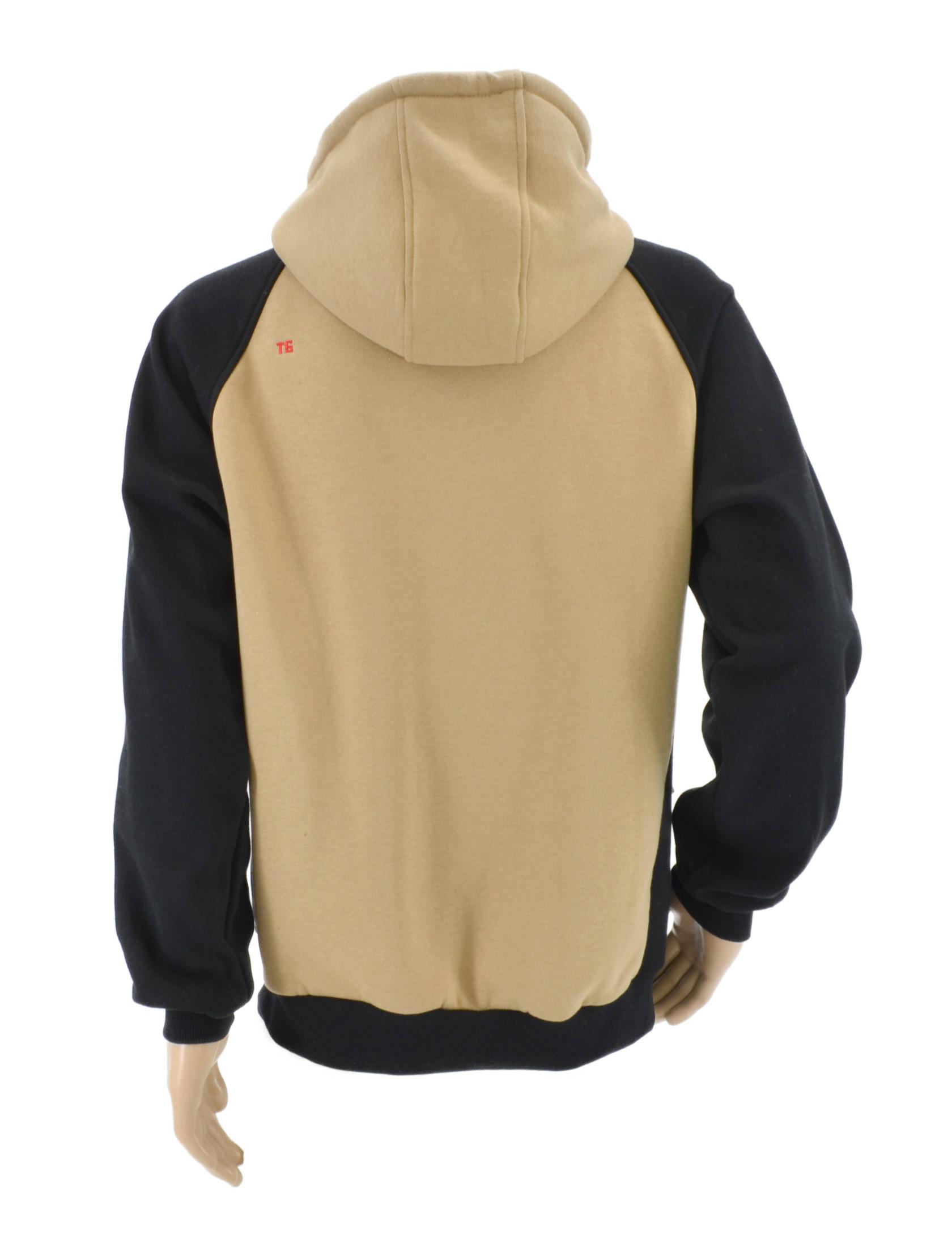 Ciepła bluza wykonana z bawełny drapowanej od wewnątrz, gruba i bardzo ciepła. Miękka i przyjemna w dotyku, elastyczna. Właściwości: – Bardzo ciepła, skutecznie zatrzymuje ciepło i izoluje przed zimnem. – Zapewnia oddychalność i paro przepuszczalność. Elementy konstrukcyjne: – Elastyczne ściągacze na rękawach i dolny chronią przed zimnem.. – 2 kieszenie dolne zapinane na zamek, pojemne, mieszczące duże przedmioty. – Rozciągliwy materiał dopasowuje się do sylwetki, nie krępuje ruchów, nie uciska. – Ryglowany rękaw dostosowuje się do szerokości barków. – Kaptur regulowany za pomocą sznurka. Skład: 60% bawełna 40% poliester Gramatura: 340 g/m2 Kolor: czarno/beżowy Wymiary: – szerokość klatki piersiowej 58.5 cm – długość rękawa 86 cm – długość tyłu 73 cm Pobierz kartę produktu