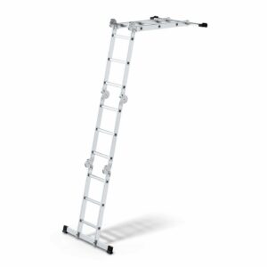 Lekka i wytrzymała drabina przegubowa, wykonana z aluminium, tłoczona. Samoblokujące się zawiasy pozwalają na pracę w każdej konfiguracji. Może być używana jako drabina opieralna, wolnostojąca, platforma robocza lub drabina na schody. Antypoślizgowe, żebrowane szczeble są mocno przymocowane do bocznych podłużnic dla lepszej stabilności. Wyprofilowane gumowe stopki antypoślizgowe zapewniają dobrą przyczepność do podłoża. Szeroki stabilizator dla maksymalnej stabilności. Łatwo składana dla wygodnego transportu i przechowywania. Dane techniczne: Liczba stopni: 4×3 Maks. obciążenie: 150 kg Maks. wysokość drabiny: 370 cm Wysokość robocza: 440 cm Waga: 12 kg