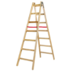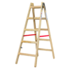 Wykonana z impregnowanego drewna sosnowego bez sęków. Metalowe ocynkowane zawiasy austriackie wraz z hakiem na wiadro. Poliestrowe pasy zabezpieczające zapobiegają niepożądanemu przesuwaniu się drabiny, zmniejszając ryzyko wypadków, poślizgnięć i upadków. Sprawdzi się w pracach domowych, malarskich, budowlanych, a także ogrodowych. Produkt Polski Dane techniczne: Wysokość 182cm Nośność 150 kg Wymiary: 185 × 62 × 20 cm Ilość szczebli: 6 Wysokość robocza: 3,3m Rozstaw szczebli: 29cm Ogranicznik rozstawu: 25mm Waga: 9kg