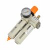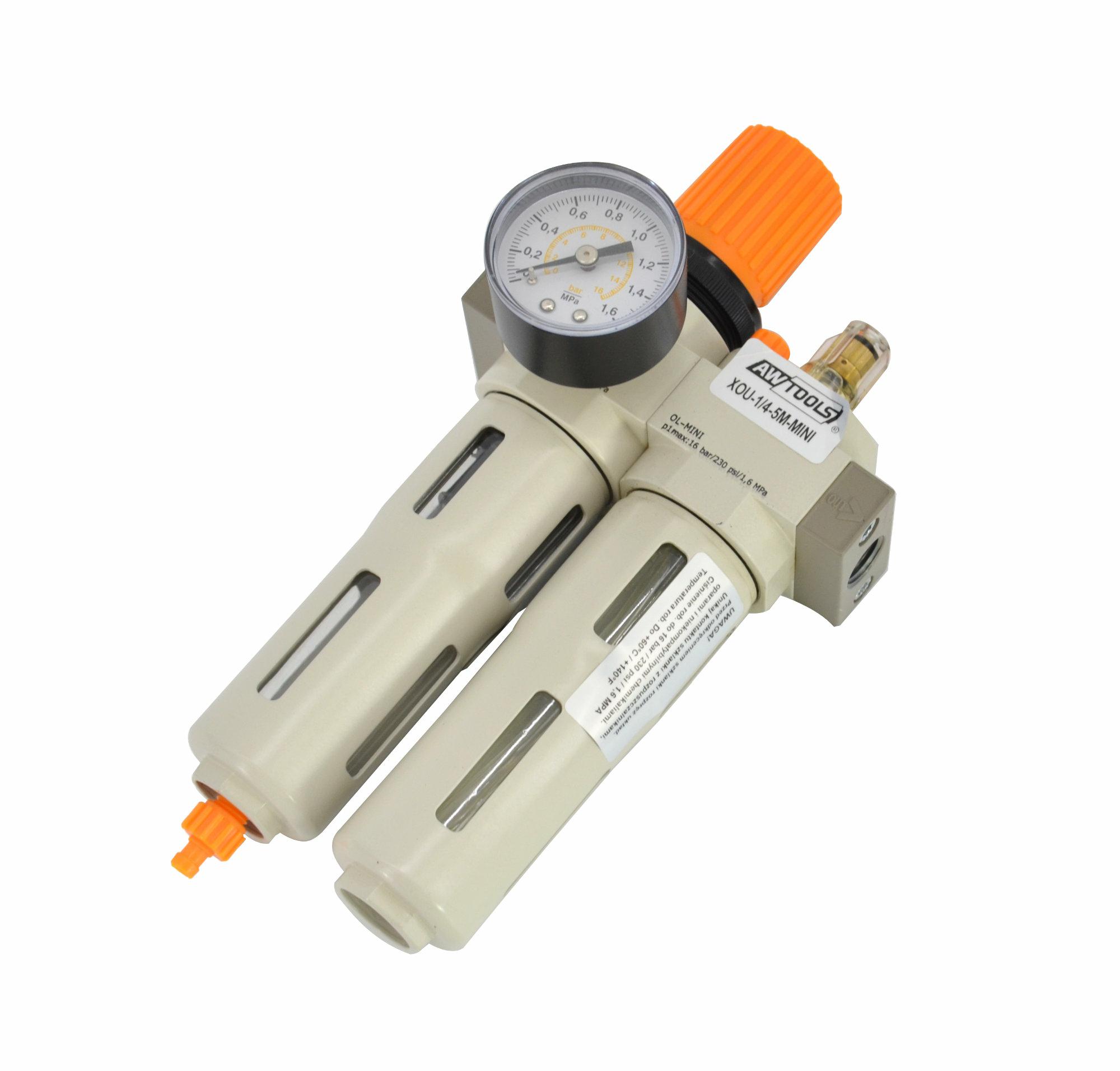 Łączy filtr, reduktor i naolejacz w jednym komponencie. Wykonany z plastiku i metalu. Posiada czytelny manometr ze skalą PSI i BAR. Wartość ciśnienia regulowana za pomocą pokrętła. Reduktor ciśnienia redukuje i kontroluje ciśnienie powietrza w systemach sprężonego powietrza. Filtr usuwa zanieczyszczenia powietrza (kurz, brud, rdzę) i zapewnia dobrą separację wszelkich płynów (woda, olej) w sprężonym powietrzu. Naolejacz wstrzykuje strumień oleju do przewodu powietrza w celu zmniejszenia tarcia ruchomych elementów narzędzi pneumatycznych (zawory, cylindry i silniki) oraz chroni przed korozją, uszkodzeniami oraz wydłuża ich żywotność. Metalowa osłona ze zbiornikiem z poliwęglanu. Zawór spustowy zapobiega gromadzeniu się wody w zbiorniku. Dane techniczne: Przyłącze: 1/4″ MIDI Ciś. wejściowe: 1-16 bar / 230 psi / 1,6 MPa Ciśn. wyjściowe: 1-12 bar / 175 psi / 1,2 MPa Zakres temperatur: 0-60°C Wkładka filtracyjna: 5 µm Waga: 1,8kg