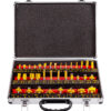 Wykonane z wysokiej jakości stali, krawędzie tnące z węglika spiekanego. Przeznaczone do cięcia, trymowania, żłobienia i profilowania. Do płyt wiórowych, płyt MDF, twardego i miękkiego drewna Dostępne z łożyskami kulkowymi lub bez. Każdy z frezów ma swoje podpisane miejsce, co pozwala na szybki wybór odpowiedniego narzędzia. Całość w aluminiowej walizce. Dane techniczne: Mocowanie: trzpień 8 mm Iość: 12 szt. Waga: 600 g