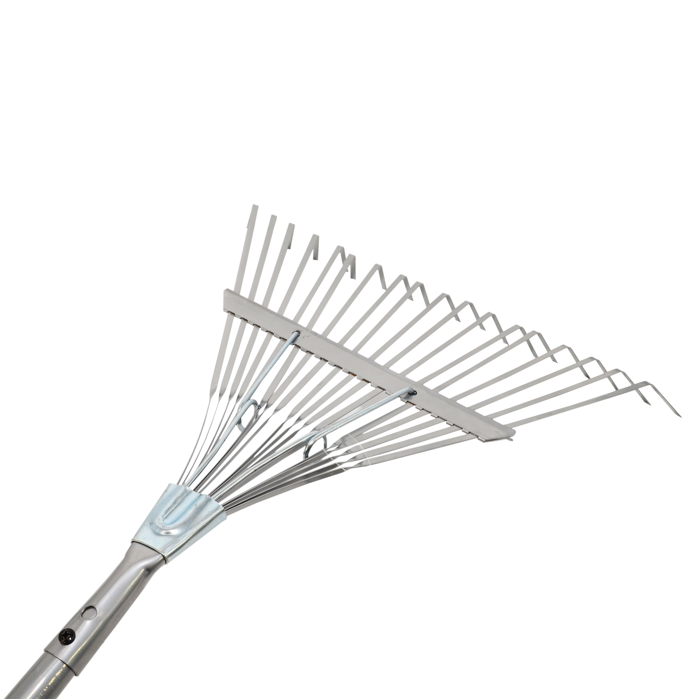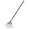 Konstrukcja w kształcie wachlarza umożliwia grabienie zarówno drobnych, jak i dużych odpadków ogrodowych.