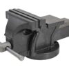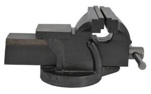 Wykonane z odpornego na uszkodzenia mechaniczne żeliwa szarego, wykończenie malowane proszkowo. Stała podstawa montowana bezpośrednio do stołu warsztatowego za pomocą otworów montażowych. Wymienne, hartowane i rowkowane szczęki dla maksymalnej siły mocowania i antypoślizgowego chwytu. Zintegrowane kowadło do kształtowania i pobijania. Chromowany uchwyt i śruba pociągowa. Przeznaczone do mocowania i zabezpieczania przedmiotów podczas obróbki mechanicznej. Niezbędne narzędzie w każdym warsztacie lub garażu. Dane techniczne: Szerokość szczęk: 5„/ 125 mm Waga: 5,5 kg