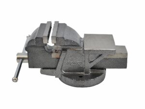 Wykonane z żeliwa sferoidalnego SG dla maksymalnej wytrzymałości i odporności na uderzenia. Żeliwo z grafitem sferoidalnym tworzy znacznie silniejszą strukturę molekularną niż zwykłe żeliwo. Pokryte farbą proszkową z efektem młotkowym do ochrony przed korozją. Stała, szeroka i stabilna podstawa montowana bezpośrednio na stole warsztatowym za pomocą śrub. Wymienne, hartowane oraz ryflowane szczęki pozwalają na mocne i bezpieczne zaciśnięcie obrabianego detalu. Śruba pociągowa z pokrętłem i końcówkami zabezpieczającymi, uchwyt do mocowania rur oraz zintegrowane kowadło. Stalowe elementy konstrukcyjne chromowane zapewniające długotrwałe użytkowanie. Sprawdzi się podczas prac naprawczych, remontowych oraz konstrukcyjnych. Dane techniczne: Szerokość szczęk:150 mm Waga: 14,25kg