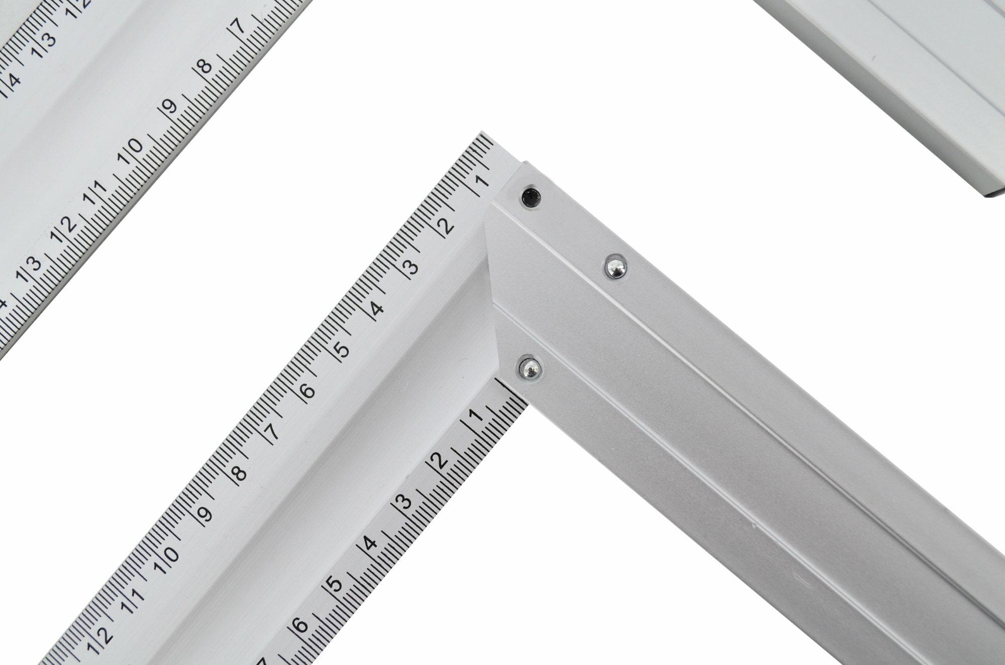 Wykonany z wysokiej jakości i wytrzymałego aluminium z nitowanym uchwytem dla dodatkowej stabilności. Posiada dwustronną podziałkę milimetrową. Możliwość ustawienia pod kątem 90° i 45°. Uniwersalne zastosowanie do różnych prac pomiarowych w sektorze budowlanym, majsterkowaniu i rzemiośle. Wszechstronne zastosowanie do oznaczania i pomiaru kątów prostych w obróbce metalu i drewna. Z otworem do zawieszania zapewniającym oszczędność miejsca w każdym warsztacie. Dane techniczne: Długość: 400mm Szerokość: 40mm Waga: 185g