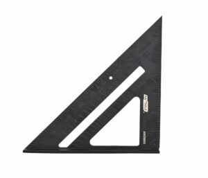 Lekka konstrukcja wykonana ze stopu aluminium z wykończeniem malowanym proszkowo, odporny na warunki robocze i korozję. Wyposażony w tłoczoną podziałkę milimetrową i calową. Skala kątomierza 0-90°. Przeznaczony do prac stolarskich, ciesielskich, konstrukcyjnych i wykończeniowych. Sprawdzi się przy trasowaniu linii i wyznaczaniu kątów, podczas montażu więźb dachowych i belek. Dane techniczne: Rozmiar: 7″ Wymiar: 185x180x255 mm Waga: 130g