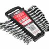 Wykonany ze stali narzędziowej chromowo-wanadowej (CrV). Kuty matrycowo, hartowany i odpuszczany, pokryty ochronną powłoką chromu z polerowanym wykończeniem. Posiada z jednej strony główkę otwartą, a z drugiej strony główkę zamkniętą. Wyposażony w grzechotkę z 72 zębami i kątem wychylenia 5°. Główka przegubowa ułatwia lepszy dostęp w ciasnych przestrzeniach. Czytelne oznaczenia rozmiaru dla szybszej identyfikacji. Przeznaczony do amatorskich jak i profesjonalnych zastosowań. Całość na wieszaku z tworzywa do zawieszenia. Dane techniczne: Rozmiar: 8; 10; 13; 14; 17; 19mm Ilość: 6szt. Waga: 715g