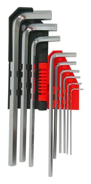 Wykonane z wysokogatunkowej stali CrV, niklowane. Odporne na odkształcenia i ścieranie. Hartowane części robocze. Fazowane krawędzie. Plastikowy klips ułatwiający przechowywanie i transport. Oznaczenie rozmiarów kluczy na klipsie. Możliwość zawieszenia zestawu. Zestaw zawiera: Klucze: 1,5, 2,0, 2,5, 3,0, 4,0, 5,0, 6,0, 8,0, 10,0 mm Ilość: 9 szt. Typ: krótkie Waga: 390 g
