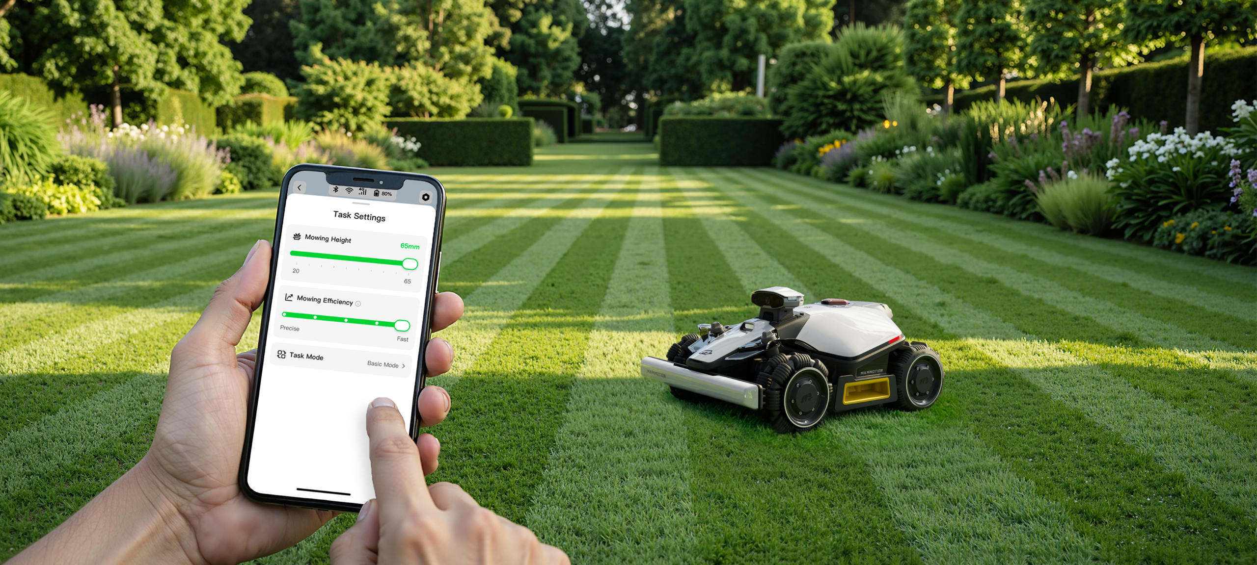 Zastosowany system NetRTK zapewnia stabilne prowadzenie robota na obszarze o promieniu do 500 metrów. Dzięki integracji nawigacji satelitarnej z systemami wewnętrznymi oraz opatentowanymi algorytmami Mammotion, LUBA mini 2 AWD zachowuje dokładność jazdy nawet w miejscach o ograniczonym sygnale GPS, np. w pobliżu budynków czy drzew.