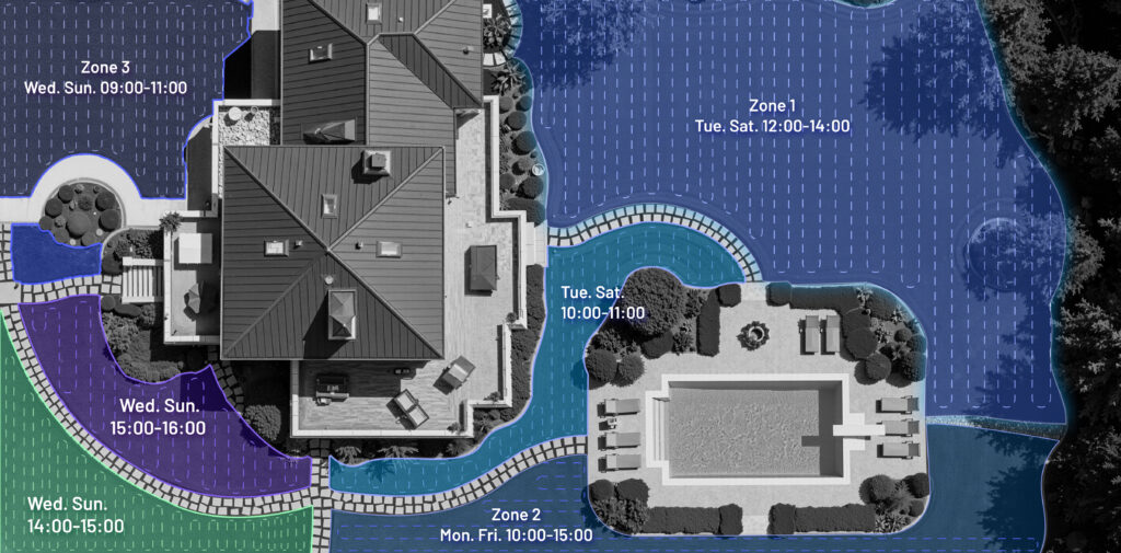 Robot obsługuje do 10 niezależnych stref koszenia, co pozwala precyzyjnie zaplanować pracę w różnych częściach ogrodu i dostosować harmonogram do własnych potrzeb.