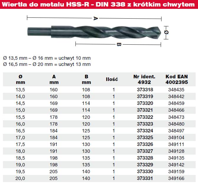 Wiertło ze stali szybkotnącej produkowane zgodnie z DIN 338.