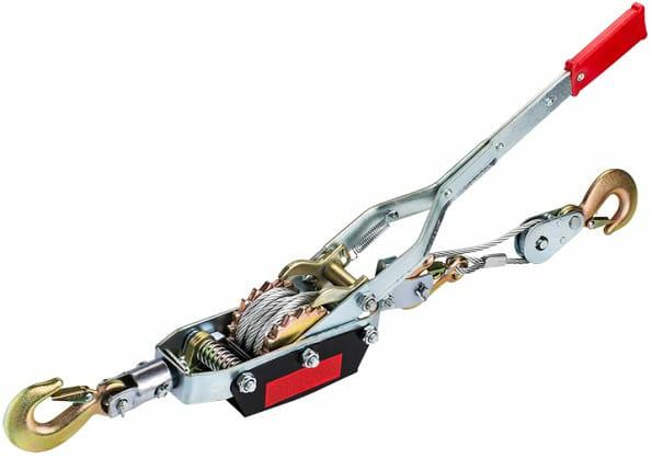 Wyciągarka linowa z napędem ręcznym służy do transportowania ładunków w płaszczyźnie poziomej. Uciąg: 1000 kg. Została wykonana ze stalowej liny oraz dźwigni napędzającej bęben z mechanizmem zapadkowym . Wyciągarka została wykonana z wysokiej jakości materiałów o odpowiedniej trwałości – stal konstrukcyjna,odlewane haki ze sprężynami zwrotnymi. Dwie zapadki