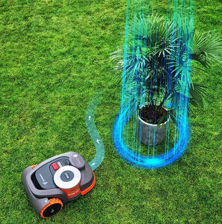 System VisionFence™ z wbudowaną sztuczną inteligencją analizuje otoczenie w czasie rzeczywistym, rozpoznając przeszkody stałe i dynamiczne, takie jak meble ogrodowe, zabawki, zwierzęta czy elementy architektury. Robot bezpiecznie omija obiekty, zachowując ciągłość pracy oraz minimalizując ryzyko kolizji.