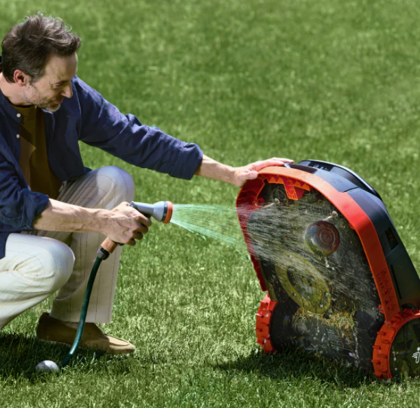 Napęd z systemem kontroli trakcji (TCS) oraz zoptymalizowany bieżnik kół umożliwiają pracę na nachyleniach do 50%. Robot zachowuje stabilność i precyzję nawet na mokrej trawie oraz nierównym podłożu.