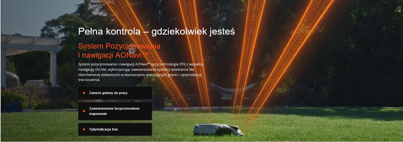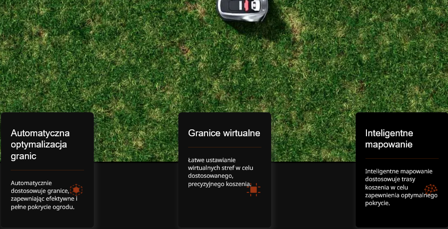 Robot samodzielnie mapuje teren, planuje optymalne trasy koszenia i wykonuje pracę w sposób systematyczny, eliminując chaotyczne przejazdy. Dzięki temu trawnik jest koszony równomiernie, szybciej i z wyraźnie lepszym efektem wizualnym.